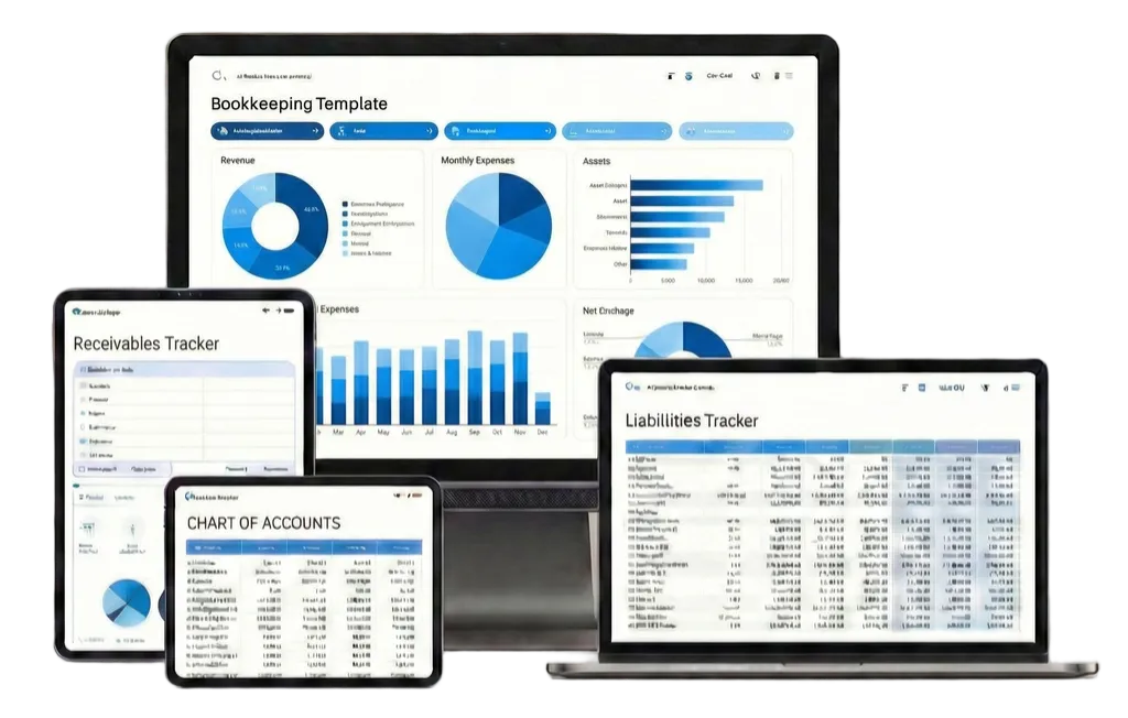 Chart of Accounts Templates: professional bookkeeping categories for both service and product businesses.